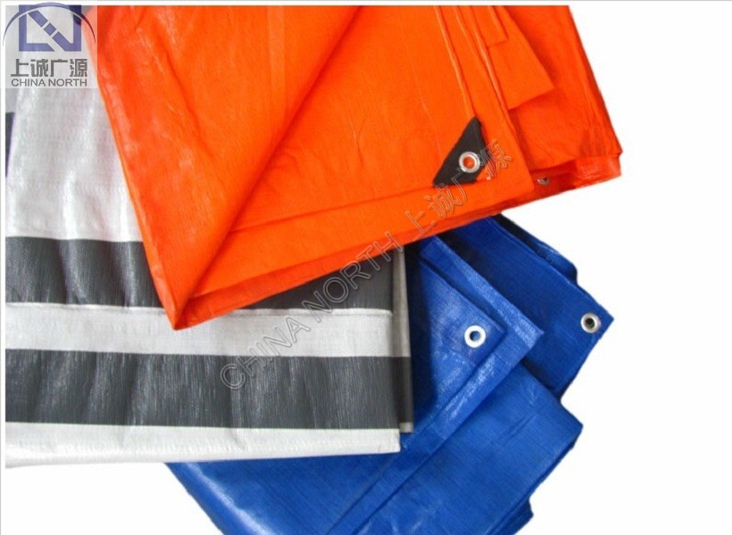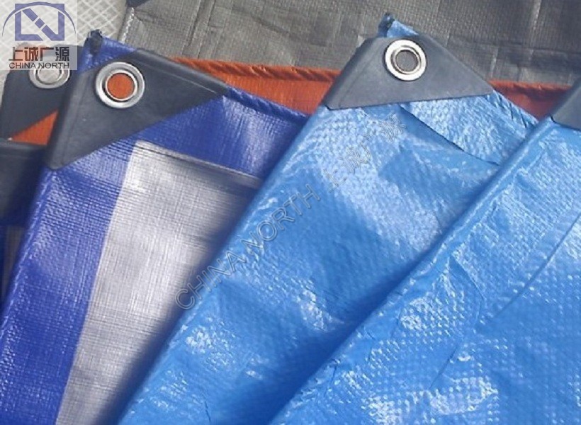 PE fabrics both sides laminated, reinforced by P.P rope in hem on all around edges, aluminum eyelets every 1 meter or 3' or 1yd interval(30cm, 50cm interval also available),UV UR treatment also available.